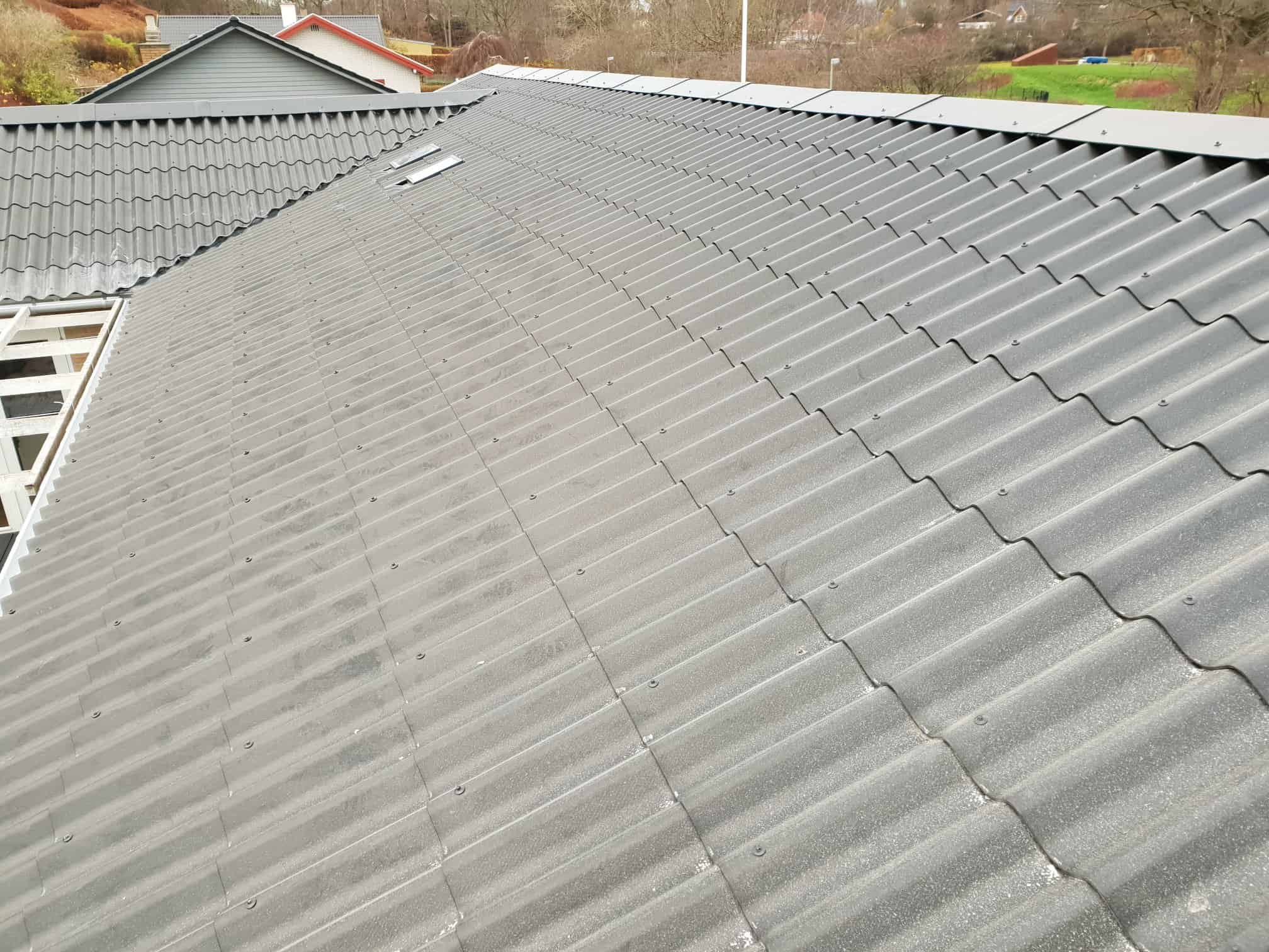 Nyt tag til en glad kunde i Hillerød. Der er bla udført: Nyt tag. Montering af Velux lystunneler. Nye tagrender og nedløb. Nye skotrender i sort aluminium.